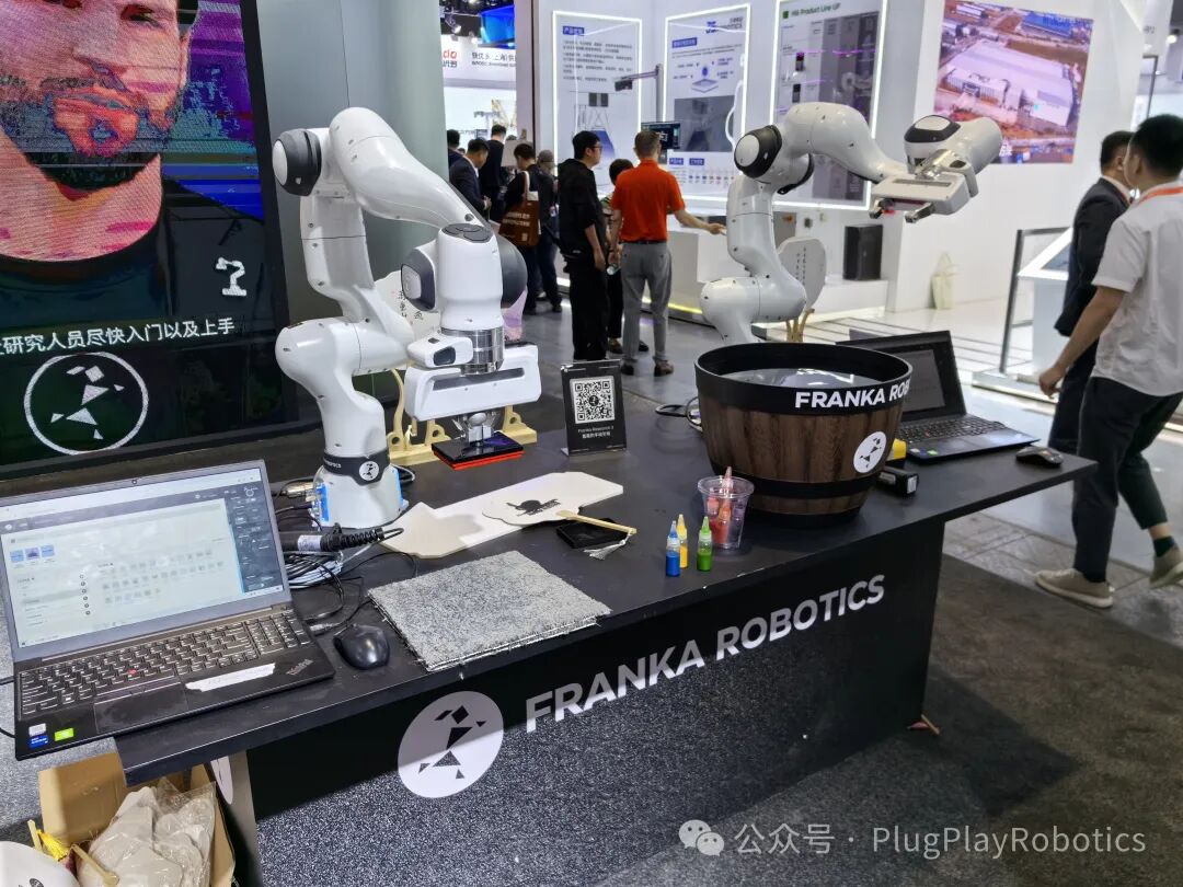此次展会中,Franka机器人吸引了大量关注的是其以精准的七轴设计和力控技术,完美再现了中国传统工艺漆扇的制作过程。这一展示不仅突显了Franka机器人在精细操作中的灵活性与精准性,还彰显了其与中国文化的深度融合。